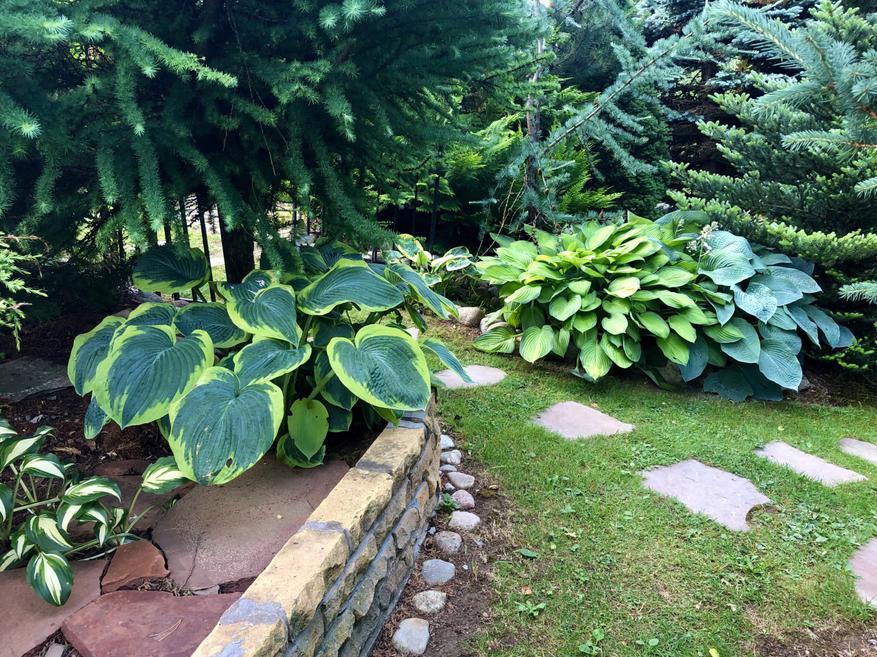 - Многолетники (хосты, гейхеры, астильбы для фона).