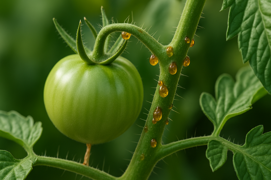 Если вы выращиваете помидоры, будь то на грядке, в теплице или даже на балконе, — однажды могли заметить странные янтарные или прозрачные капли на стеблях или листьях. Они липкие, клейкие и похожи на капельки меда или даже смолы деревьев. Это и есть так называемая томатная смола, и она, на удивление, вызывает у огородников массу вопросов.