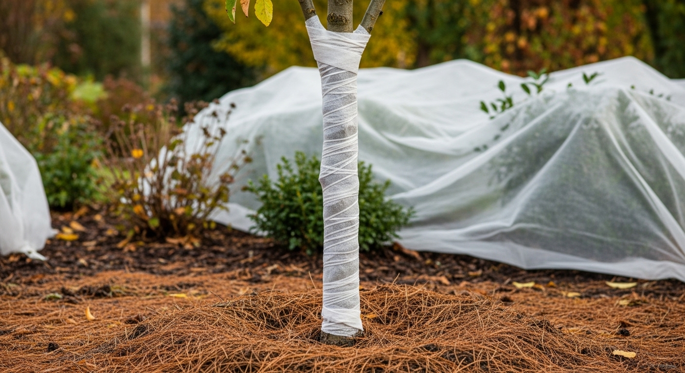 Для защиты от мышей и зайцев оберните стволы молодых деревьев на высоту до 80-100 см плотным материалом, таким как рубероид, пластиковые полосы или агроволокно. Хвойные ветки, уложенные иголками вниз, также отпугнут грызунов. Ягодные кусты, такие как смородина или малина, укройте легкими каркасами с нетканым материалом, обеспечивая вентиляцию, чтобы избежать скопления конденсата. В снежные зимы дополнительно окучивайте саженцы снегом или используйте хвойный лапник для укрытия.