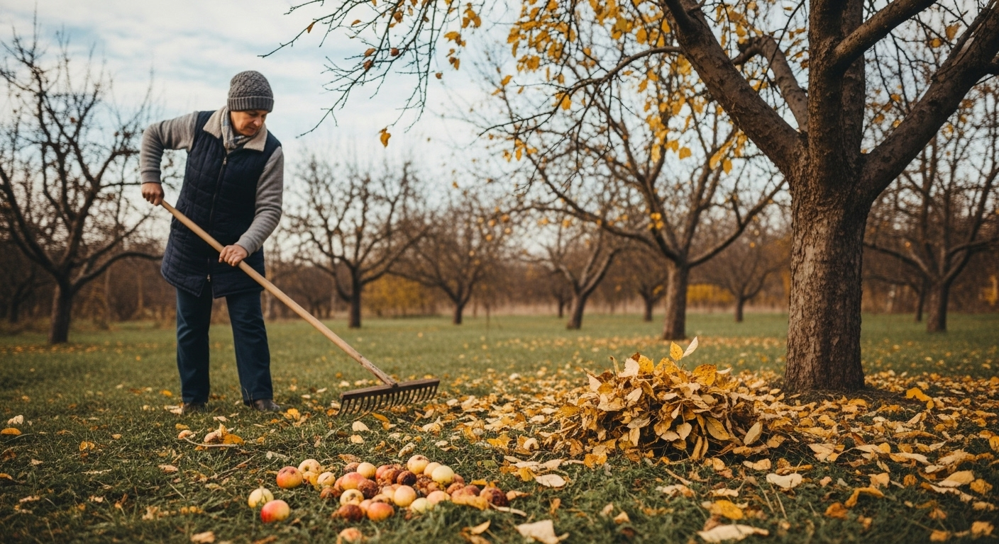 Листву соберите граблями, уделяя особое внимание зонам вокруг стволов. Если листья чистые, без следов парши или мучнистой росы, их можно использовать для мульчирования или компостирования. При наличии признаков болезней листву следует уничтожить, чтобы патогены не сохранились в почве. Чистый сад не только радует глаз, но и снижает вероятность проблем в будущем сезоне.