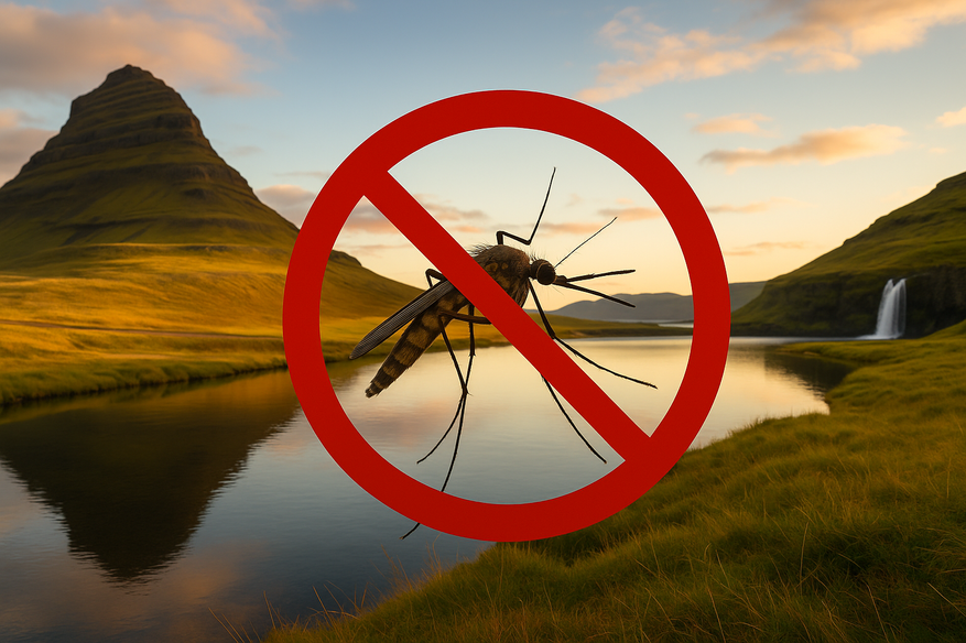 Местные жители и путешественники часто шутят: «Комары не прилетают в Исландию, потому что боятся погоды». И в этом есть доля правды. Климат страны слишком коварный для насекомых. Летом здесь не так уж и холодно, но дело в другом — температура часто скачет. Вода в маленьких озёрах то нагревается, то снова покрывается льдом. Для комара это катастрофа: его личинки должны развиваться в спокойной, тёплой и стоячей воде. В Исландии такой роскоши просто нет.