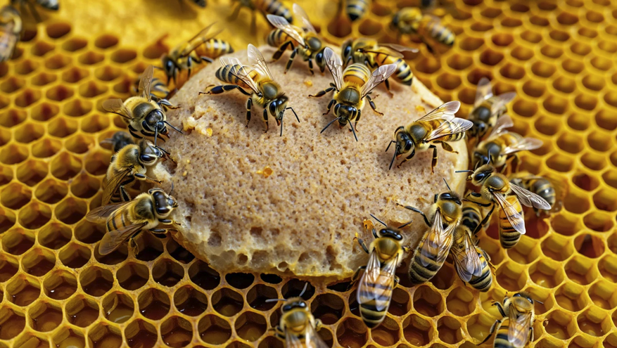 Но группа учёных из Университета штата Вашингтон и бельгийской компании APIX Biosciences, похоже, эту загадку разгадала. После более чем десяти лет упорной работы, тысяч экспериментов и подбора ингредиентов, они создали нечто вроде «энергетического батончика» для пчёл. Эту плотную массу кладут прямо в улей, и молодые пчёлы-кормилицы разносят питательные вещества по всей колонии.