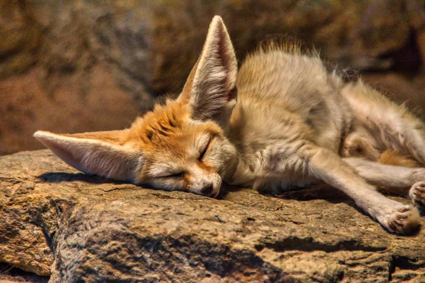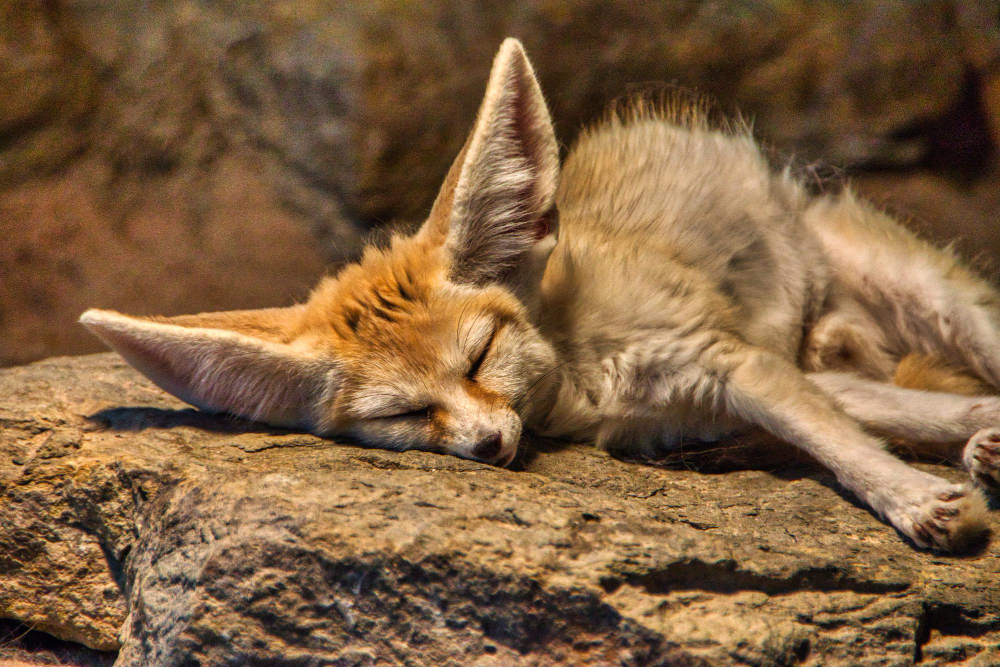 Даже лапы у него особенные. Они покрыты густой шерстью, которая защищает подушечки от ожогов, когда песок нагревается до +70 °C. Пока другие звери ищут тень, фенек легко бегает по пустыне, будто в меховых кроссовках. Днём он прячется под землёй — его нора уходит на глубину до трёх метров и имеет несколько выходов. Там прохладно, на 10-15 градусов меньше, чем снаружи. Когда жара спадает, фенек выходит на охоту.