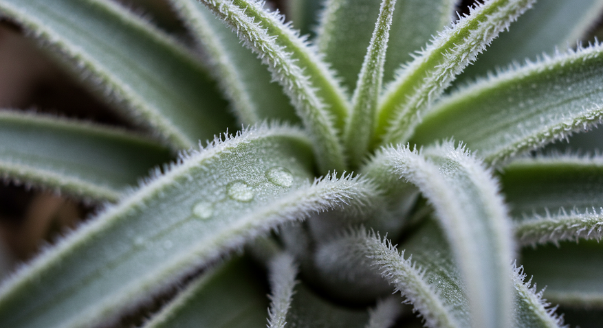 Как растение может жить без корней и грунта? У тилландсий есть несколько хитростей, которые делают их мастерами выживания. Главная из них — трихомы, крошечные чешуйки на листьях, напоминающие микроскопические губки. Эти структуры улавливают влагу из воздуха, будь то капли дождя, роса или туман, а также собирают пыль и органические частицы, которые служат источником питания. У некоторых видов, например Tillandsia tectorum, трихомы так густо покрывают листья, что те кажутся серебристыми или пушистыми, создавая эффектный визуальный акцент.