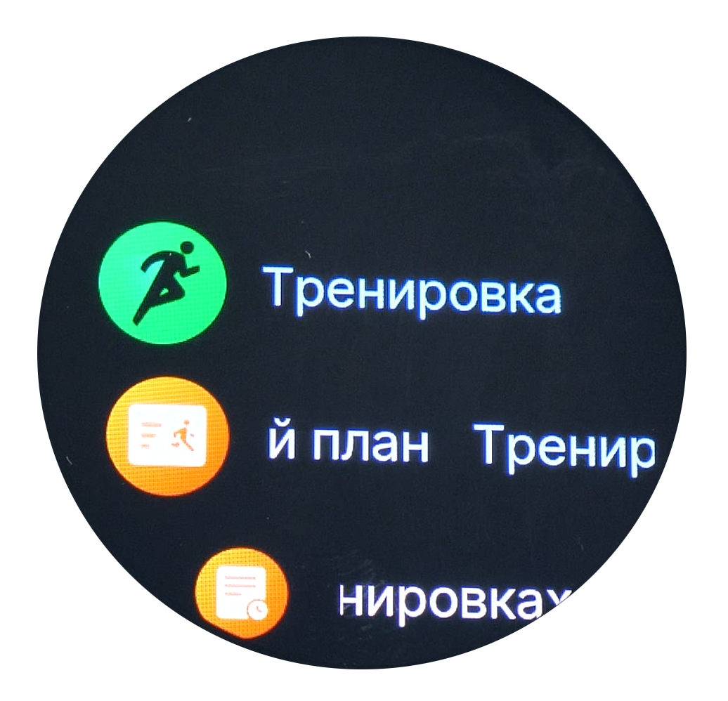 - Основное меню — позволяет настраивать параметры часов и запускать различные функции или тренировки