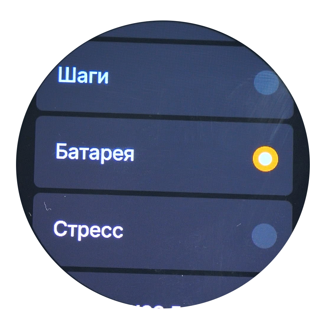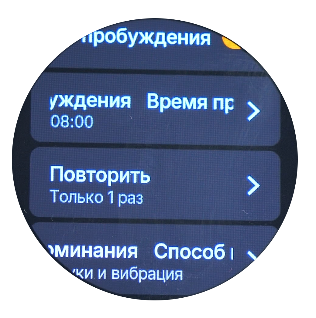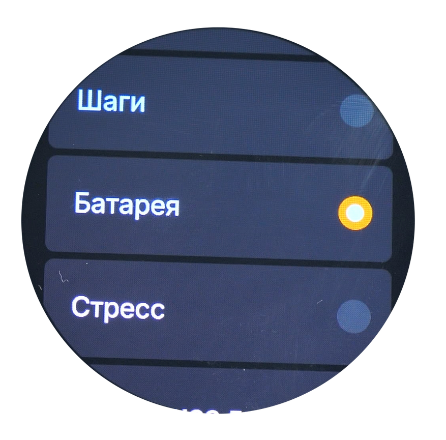 Настройки циферблата включают функцию Always on display (AOD) с возможностью выбора стиля отображения. При активации этого режима на экране постоянно отображается упрощённый циферблат с пониженной яркостью, что позволяет видеть время без дополнительных действий. Следует учитывать, что данная функция увеличивает расход заряда аккумулятора, однако не сильно.