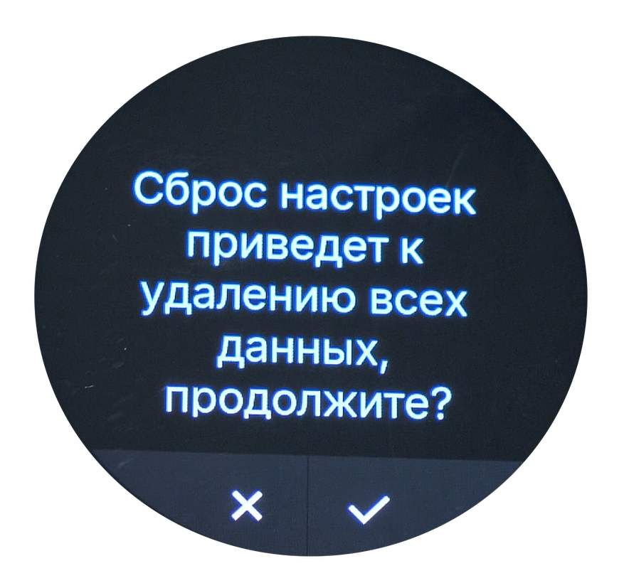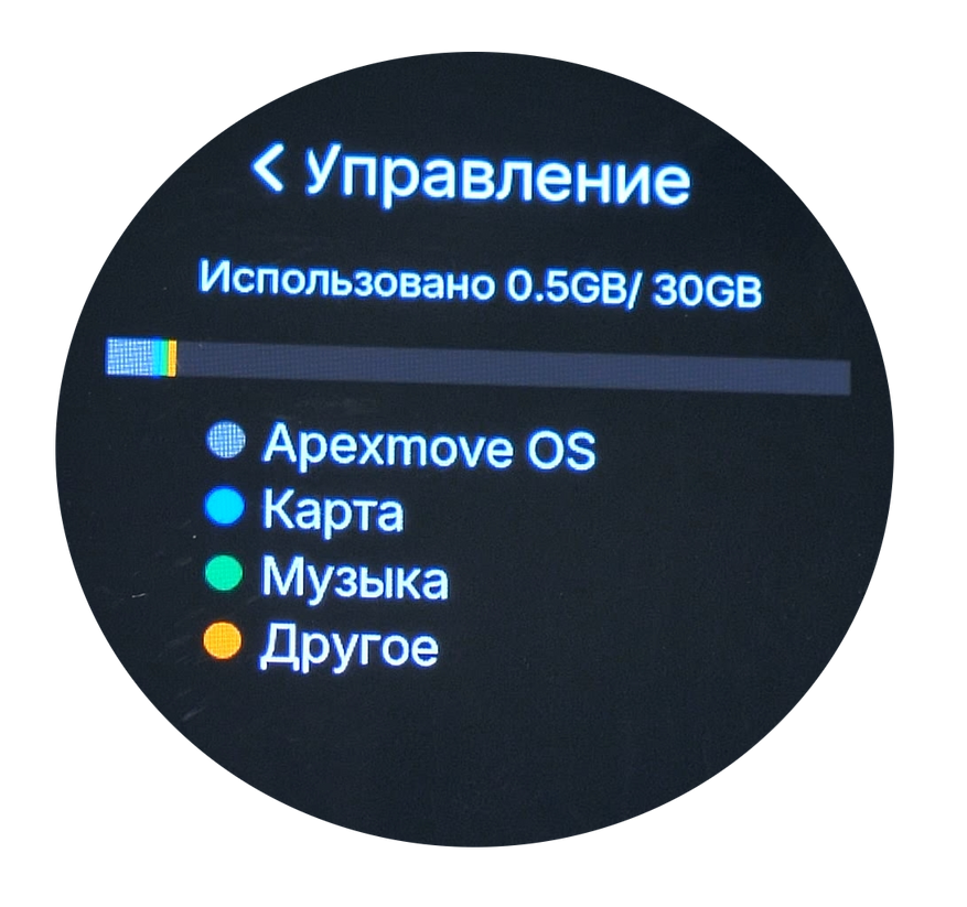 Можно посмотреть информацию об аккумуляторе, точнее, о его износе, а также сменить язык системы, вывести на экран QR-код для подключения со смартфона, посмотреть информацию о памяти часов, перезагрузить или выключить часы, а также произвести форматирование памяти, удалив всё содержимое.