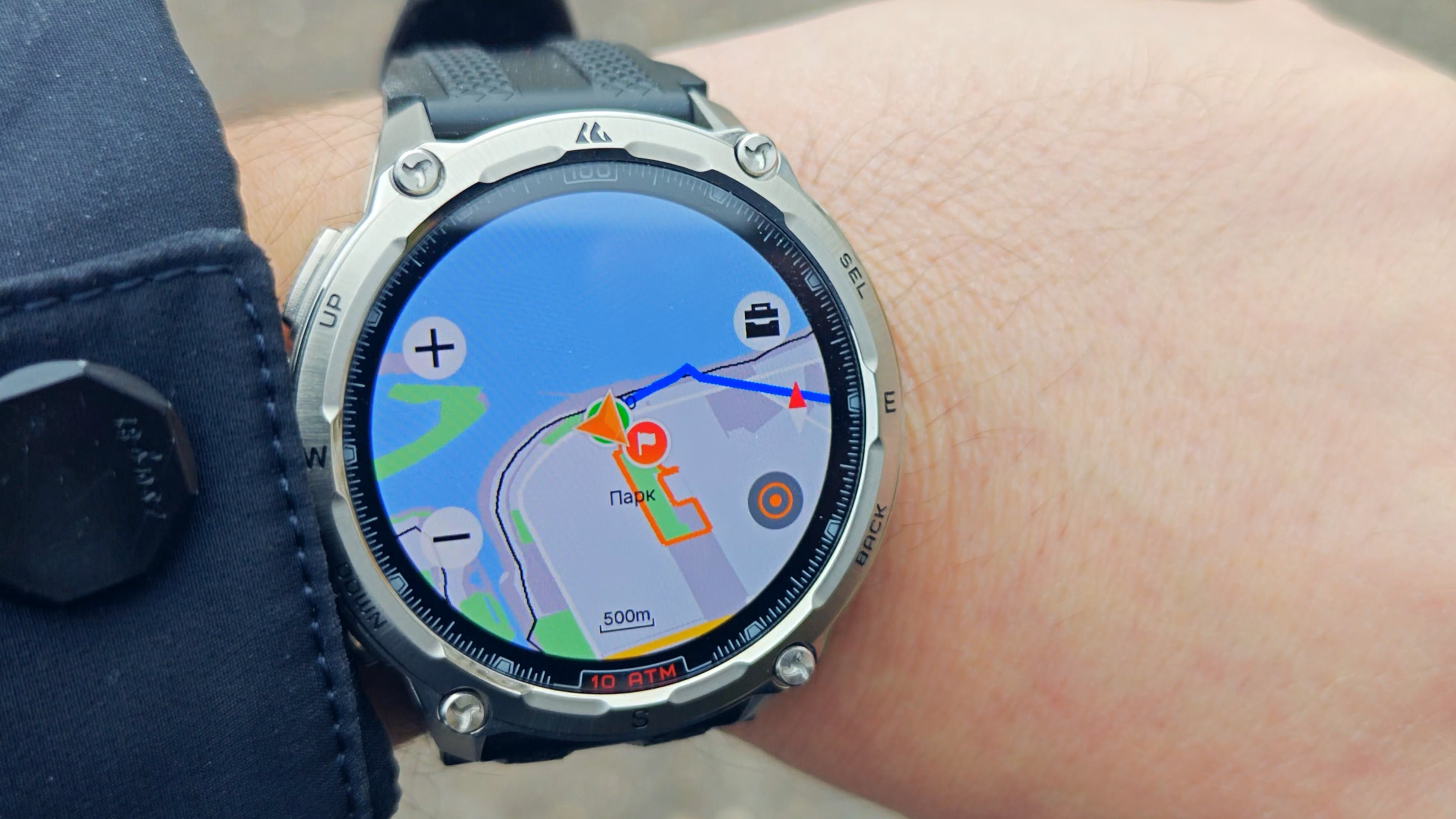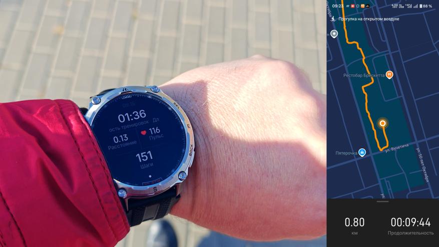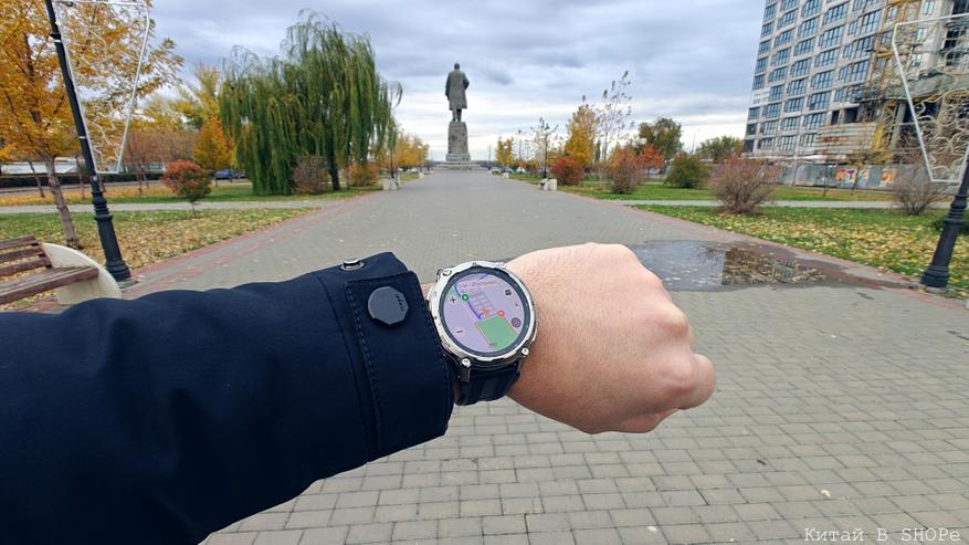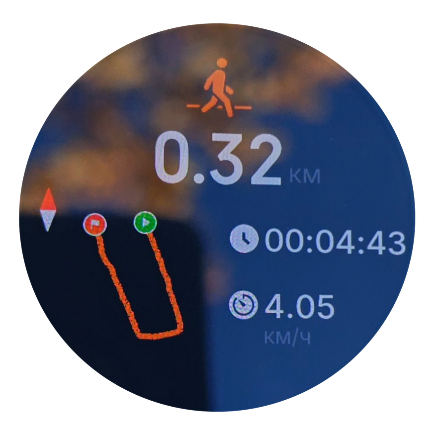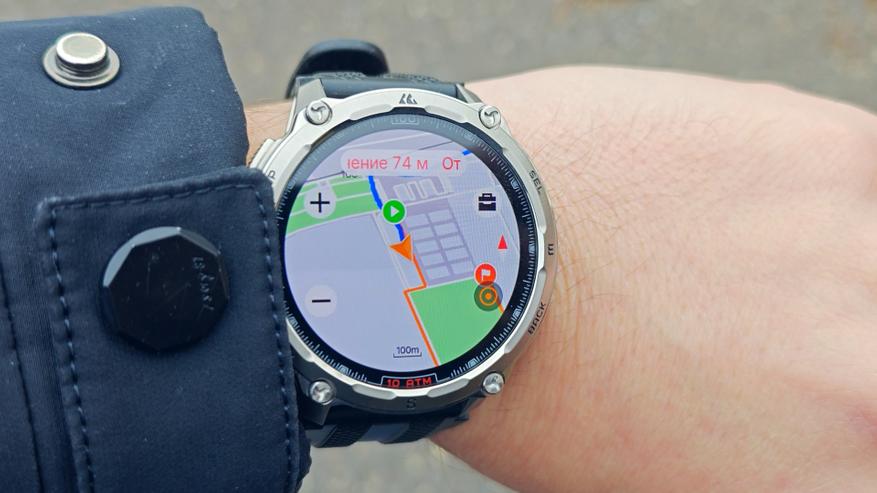 В дальнейшем при движении часы в реальном времени будут выводить на экран точное геопозиционирование для удобства движения по маршруту. Если пользователь отклонится от маршрута, часы не только предупредят об этом, но и укажут расстояние отклонения. В целом для тренировок и прогулок смартфон практически не требуется: музыку можно слушать через наушники прямо из часов, а навигацию осуществлять только с помощью часов. Смартфон с собой можно не брать, что особенно удобно для активных тренировок, где он будет только мешать.