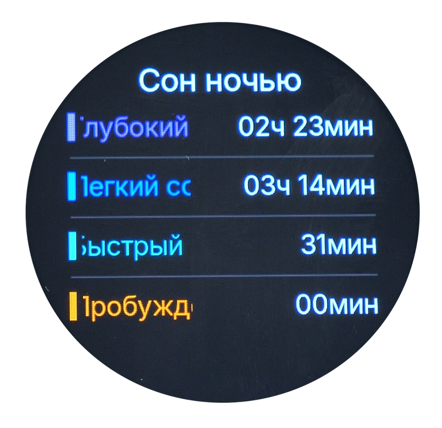 | Отслеживание сна | Стадии сна, дневной сон | |