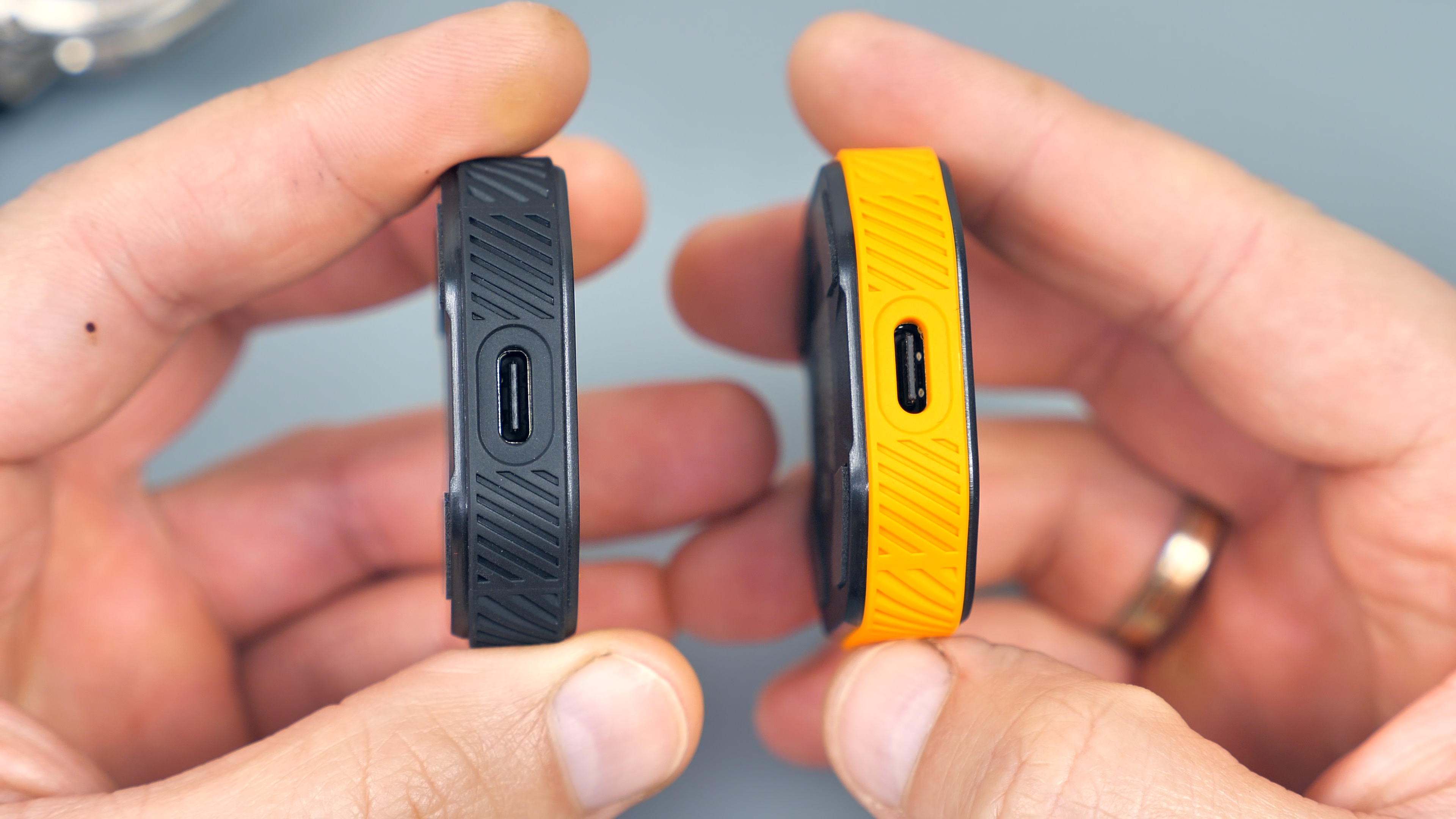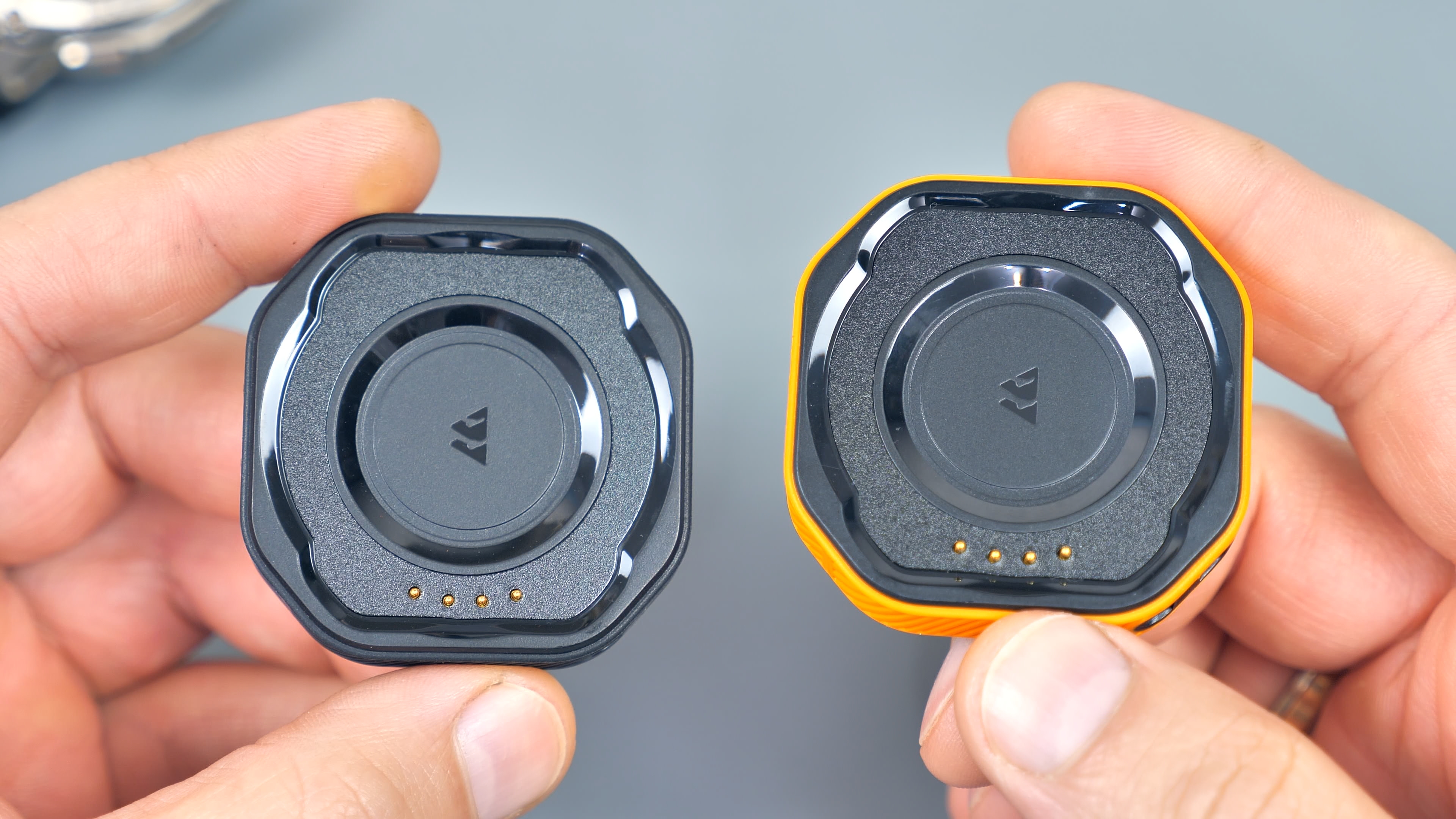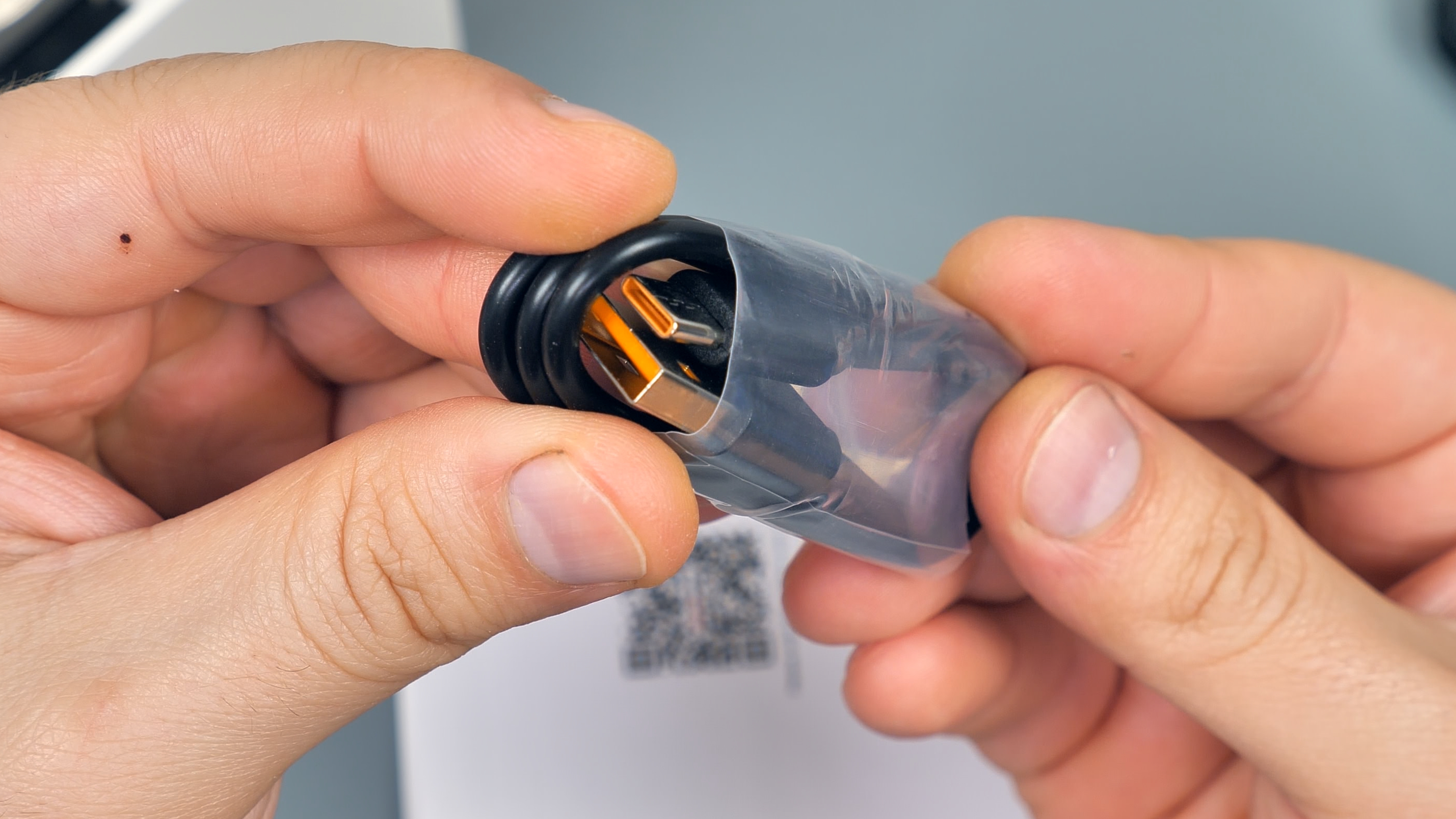 У автономной зарядной базы в комплекте есть темляк оранжевого цвета для переноски на запястье, USB Type-C кабель оранжевого цвета и краткая инструкция пользователя.