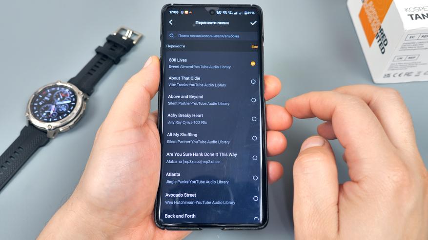 Есть возможность в приложении скопировать музыку из памяти смартфона в память часов, минуя компьютер. Это удобно, однако передача данных по Bluetooth занимает довольно много времени — придётся запастись терпением.