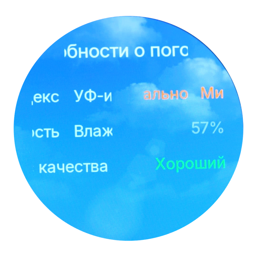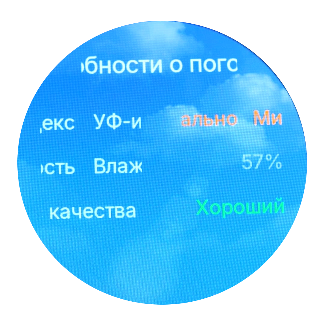 В дополнение к показателям активности часы предоставляют актуальную информацию о погодных условиях. На экране отображается комплексный прогноз, включающий важные параметры: интенсивность ультрафиолетового излучения, уровень влажности воздуха и качество атмосферного воздуха.