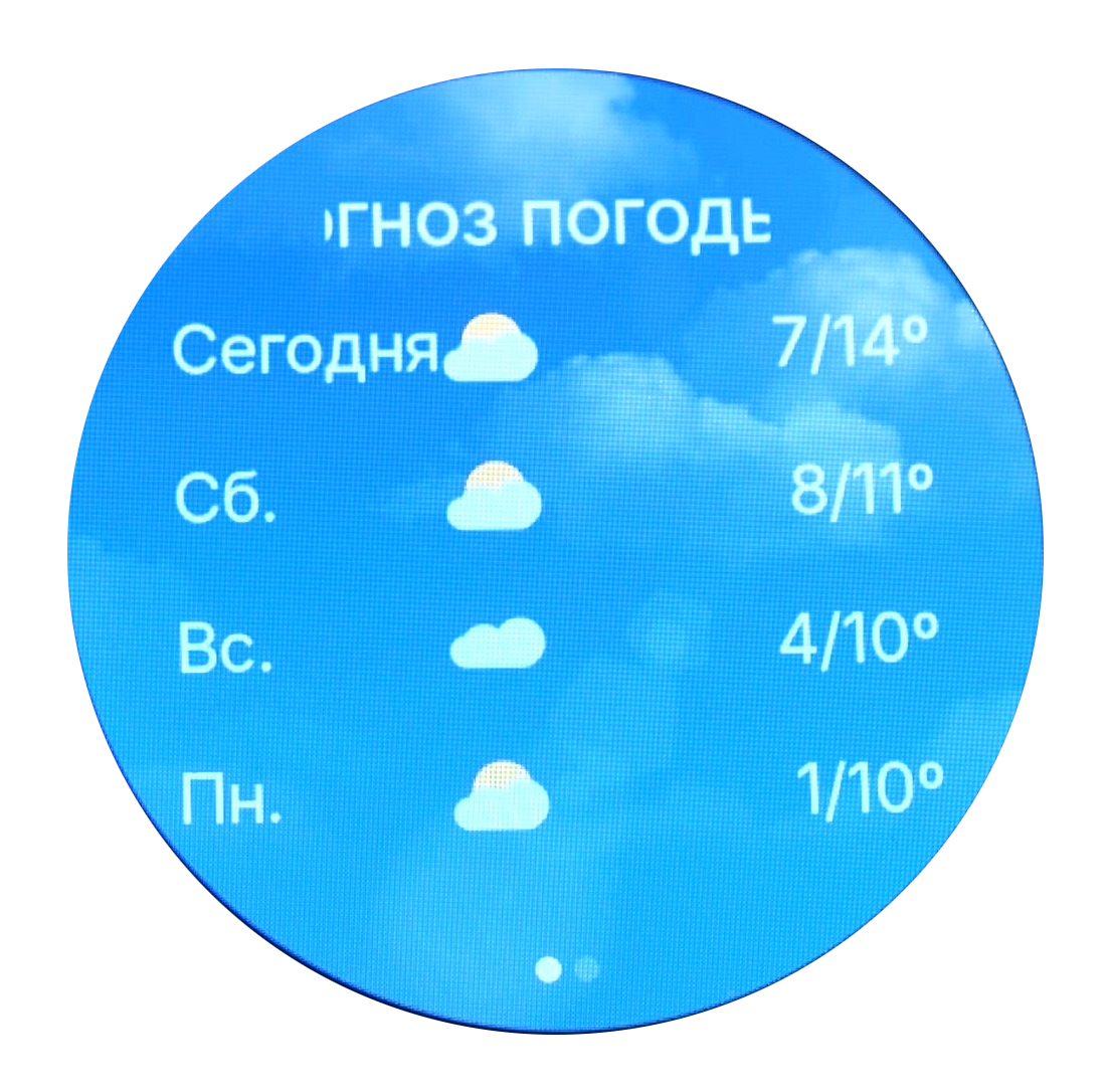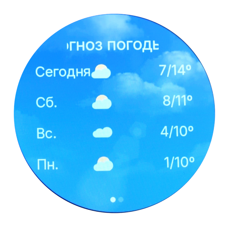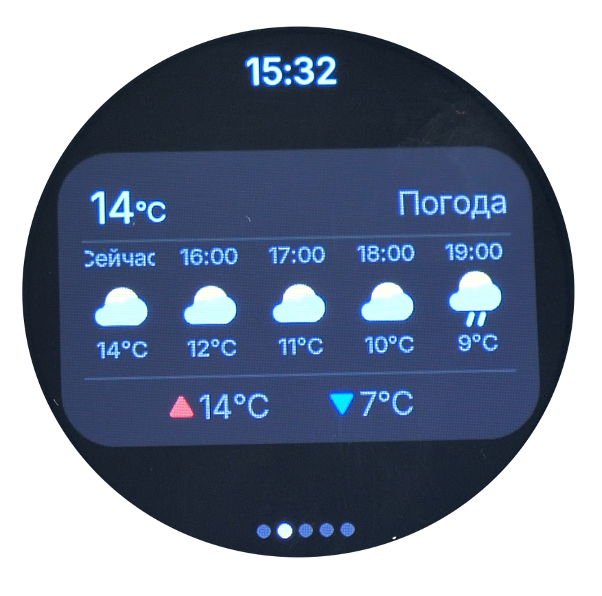 В меню часов также доступен прогноз погоды и настройки будильника. При срабатывании будильника пользователь получает не только звуковое оповещение, но и вибросигнал, что делает уведомления более заметными. Помимо стандартных будильников, предусмотрена возможность создания расписания на основе событий из календаря.