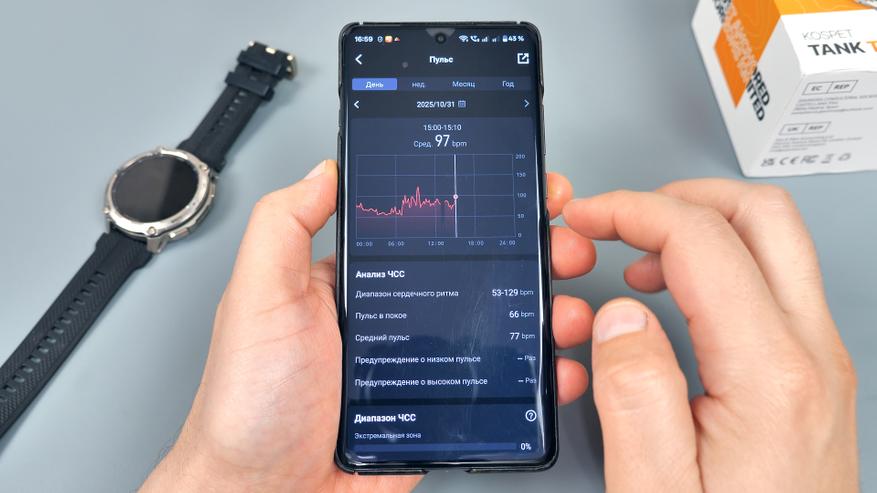 Приложение на смартфоне для часов весьма удобное, понятное и информативное. По большей части здесь представлена та же информация, что и на самих часах, только в более развёрнутом виде, и присутствуют дополнительные функции. Так, здесь можно просматривать сводную информацию о состоянии здоровья пользователя. Каждый из показателей можно развернуть и ознакомиться с подробной информацией.