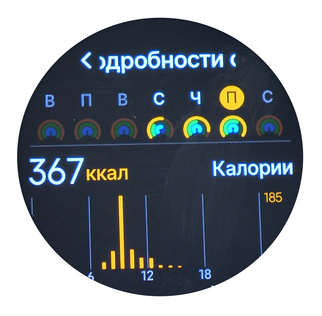 Дисплей остался прежним — это AMOLED-матрица с разрешением 466x466 пикселей и плотностью 461 PPI. Размер дисплея по-прежнему составляет 1,43 дюйма. Защитное стекло Corning Gorilla Glass 3. За два года эксплуатации это стекло доказало свою надёжность. Мои предыдущие часы пережили множество испытаний: они неоднократно падали и ударялись о различные поверхности. На металлическом корпусе появились небольшие повреждения, однако стекло осталось без единой царапины.