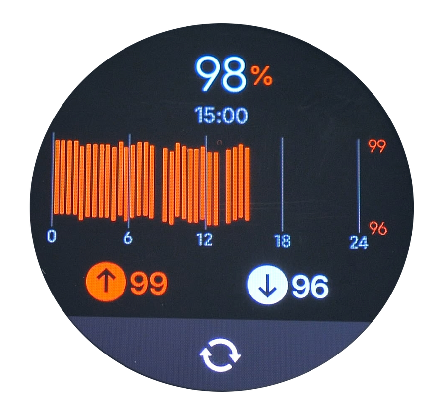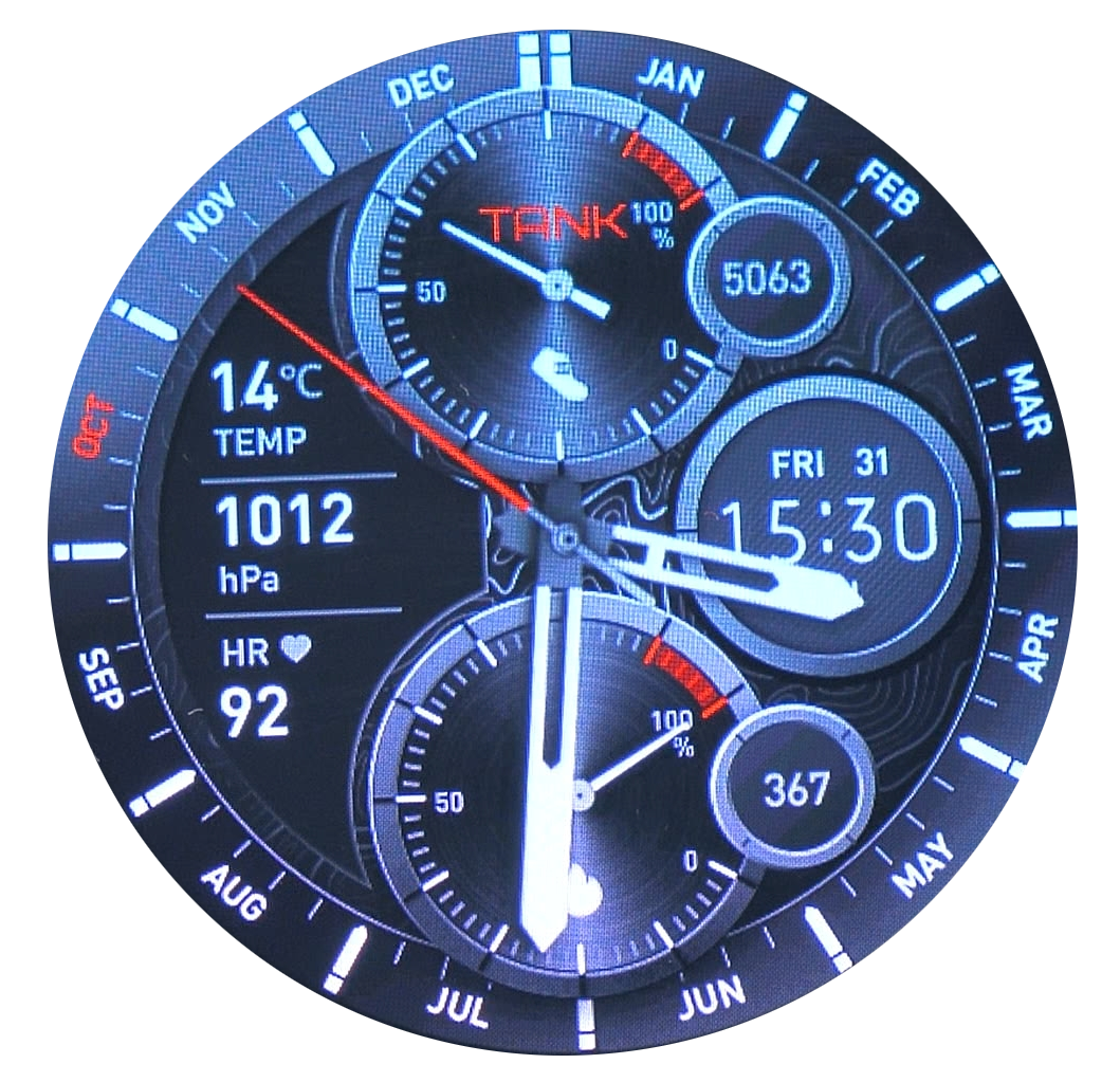 Циферблаты бывают как тёмные, так и светлые. Благодаря высокой яркости дисплея (до 1000 нит) все они отлично видны даже на улице при ярком освещении. Яркость экрана всегда достаточна в любых условиях. Это преимущество я отметил ещё на предыдущих моделях часов, где дисплей был таким же — ни разу не возникало ситуаций, когда я не мог разглядеть информацию на экране, даже на морском побережье под ярким южным солнцем.