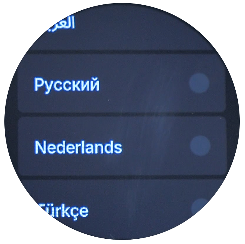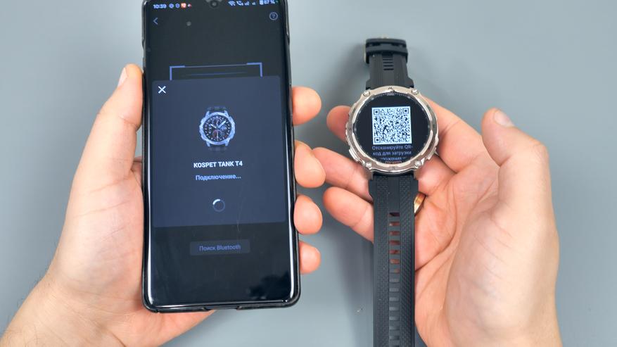 При первом включении часы предлагают выбрать язык системы. В новой версии существенно расширилась языковая поддержка — доступно более 40 языков, среди которых присутствует русский. После выбора языка на экране появляется QR-код, необходимый для подключения часов к смартфону.