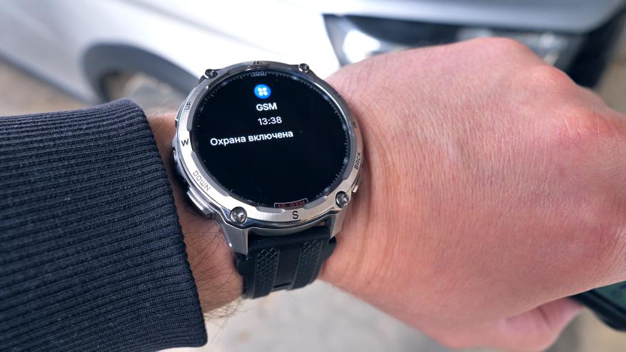 Также часы способны выводить любые уведомления от смартфона. Будь то мессенджеры, почта и другие уведомления. Я настроил вывод всех уведомлений от мессенджеров и электронной почты, а также от сигнализации автомобиля. Сигнализация у меня с GSM-модулем, и я всегда в курсе её состояния: закрылась ли машина, не сработал ли датчик удара