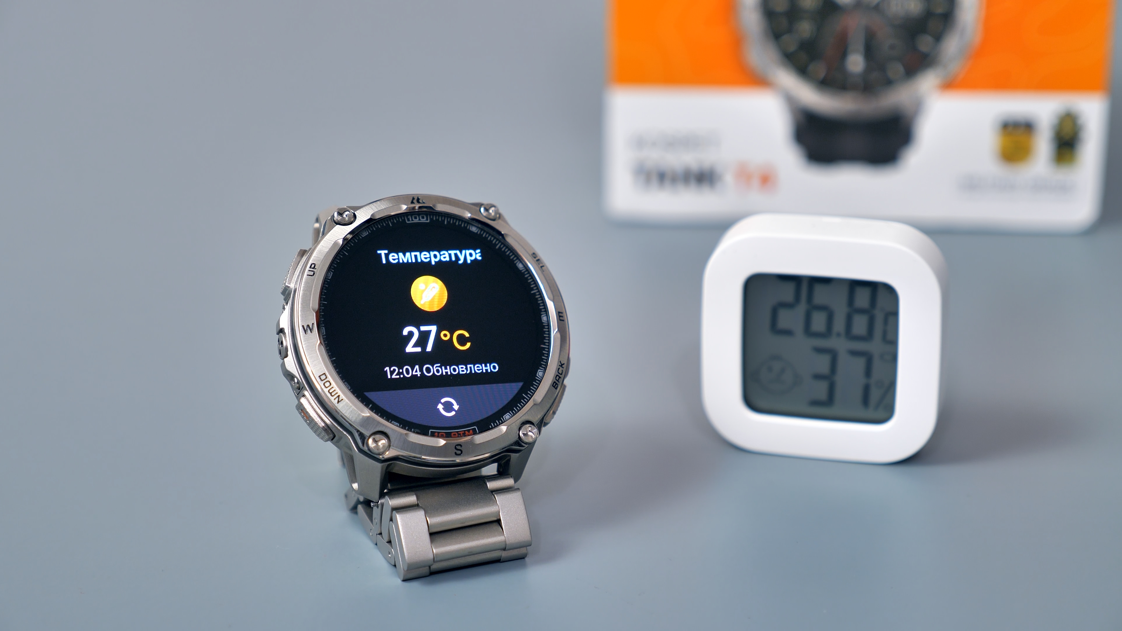 Также часы оснащены датчиком температуры окружающего воздуха. Данный датчик предназначен исключительно для измерения температуры воздуха и не подходит для измерения температуры тела. Следует отметить, что показания достаточно точные, и им можно доверять.