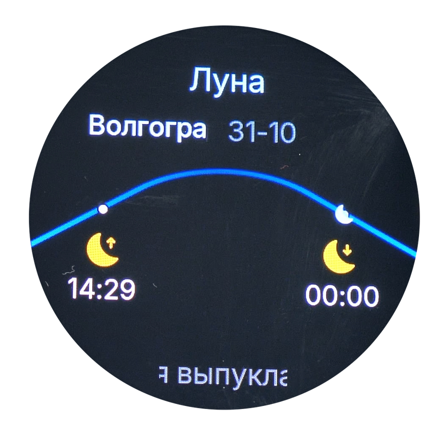 Часы предоставляют данные о фазах солнца, луны и приливах. Пользователь может настроить уведомления о наступлении этих природных явлений.