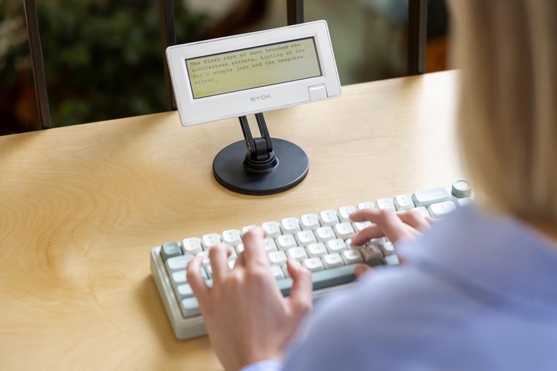 Желающие набирать, набирать и набирать текст, не отвлекаясь на новости и развлекательный контент в интернете скоро смогут попробовать BYOK (Bring Your Own Keyboard) — небольшой монохромный дисплей, подключаемый почти к любой клавиатуре. С таким устройством не получится делать ничего кроме написания текстов, при этом его можно носить буквально в кармане.
