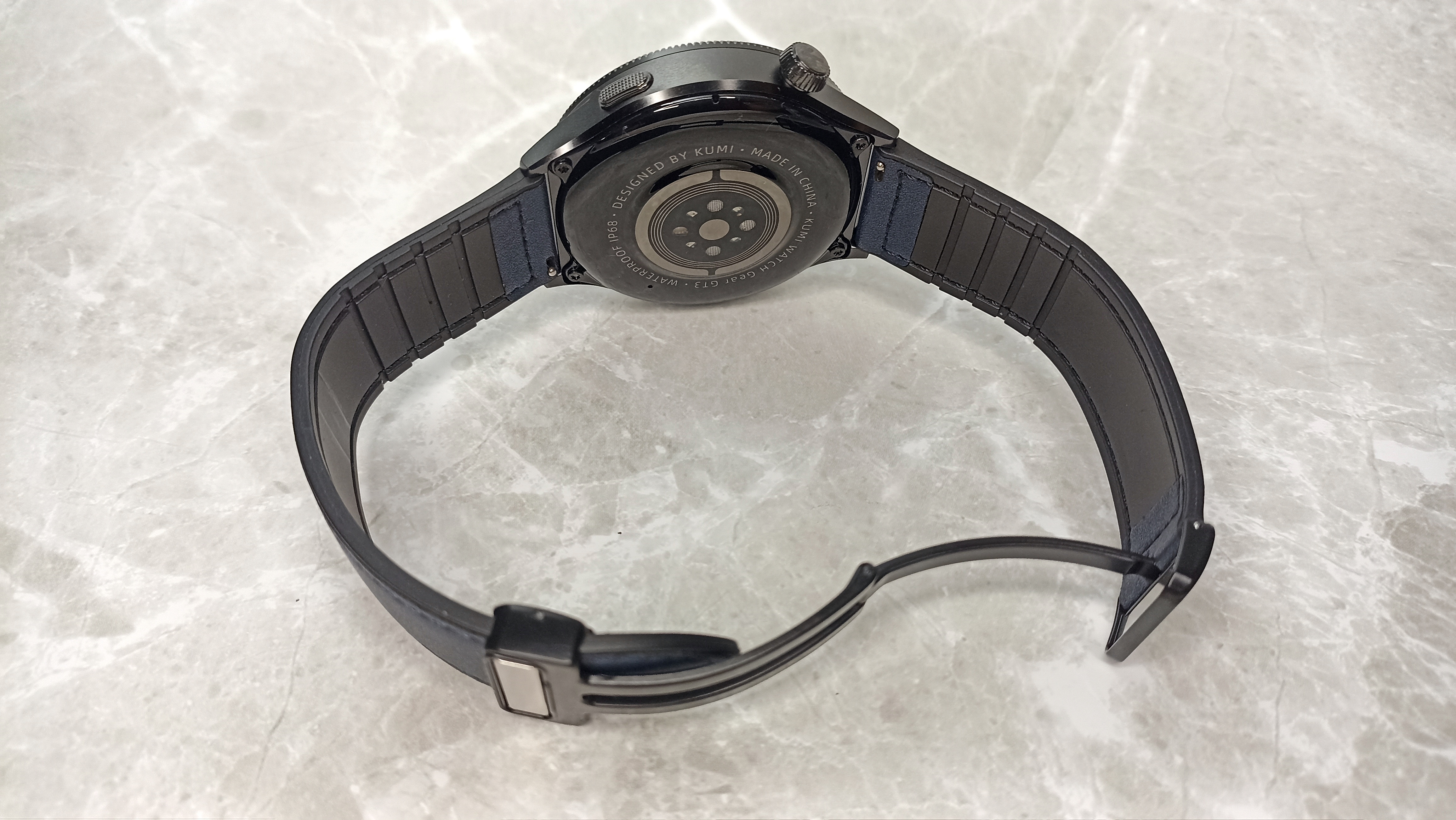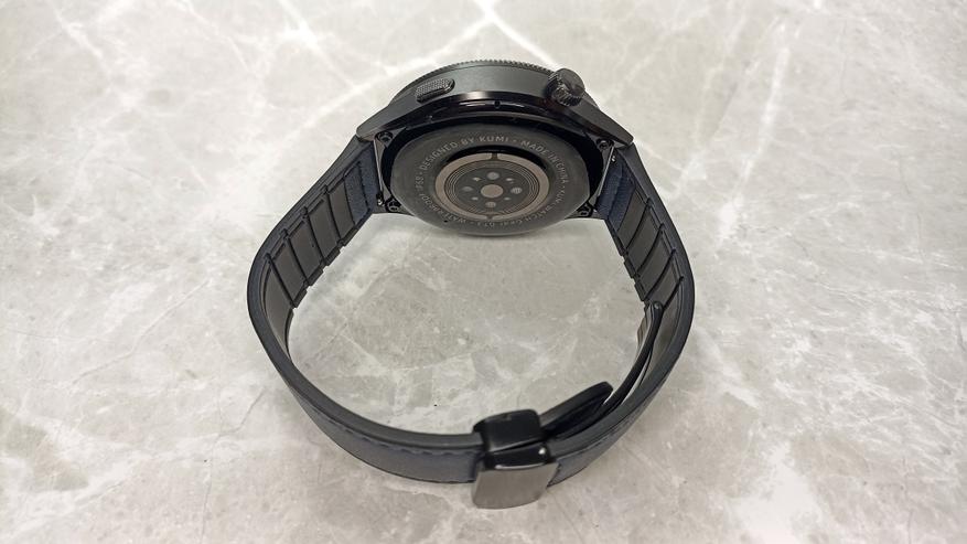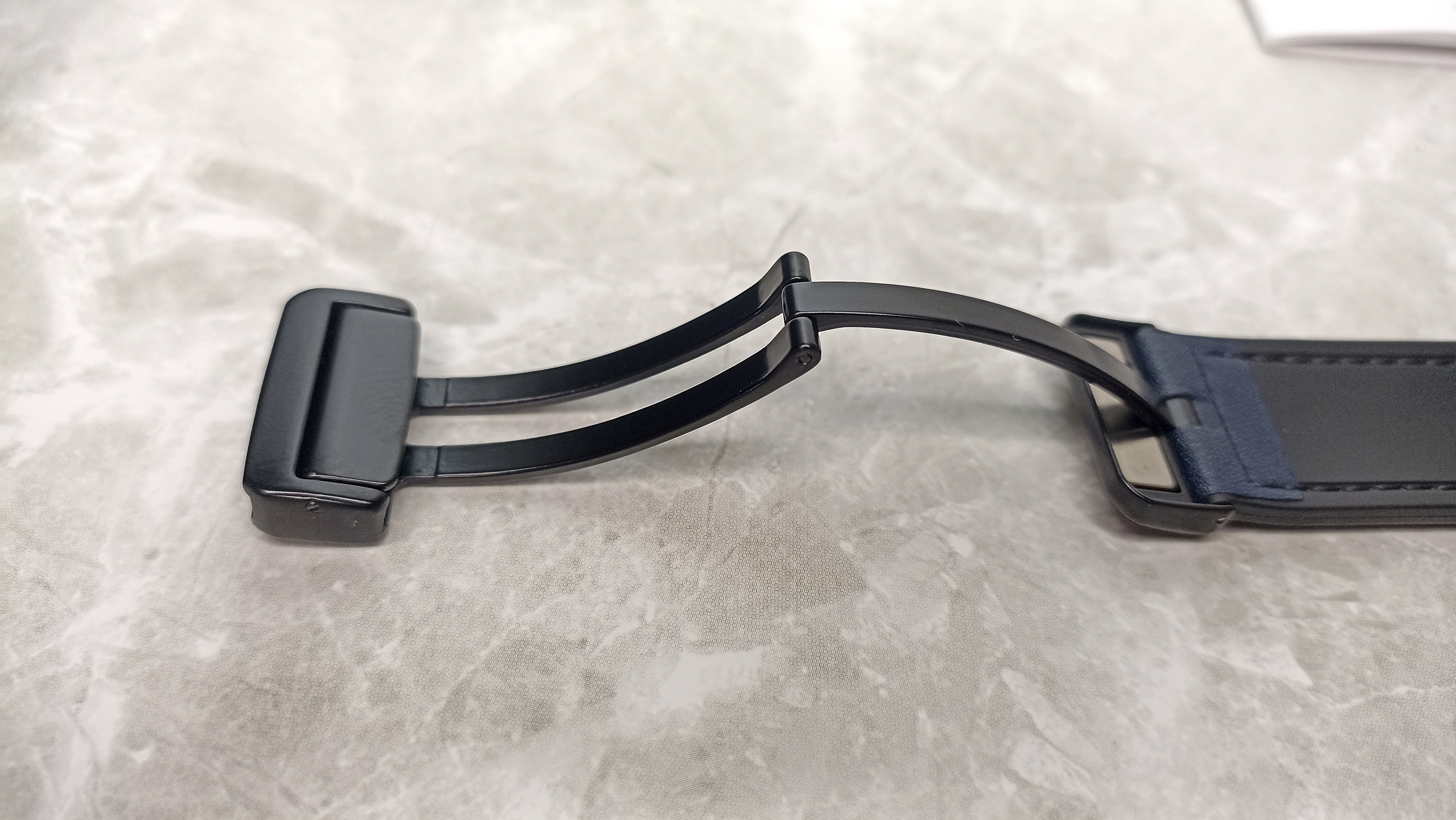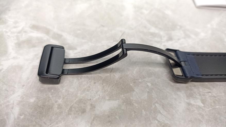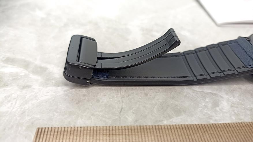 Примечательна раскладывающаяся застежка с магнитной фиксацией — мне непривычно видеть такое на смарт часах. Она достаточно крупная, но при этом изящная, и на руке не ощущается, сам механизм довольно удобен в использовании.