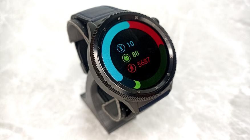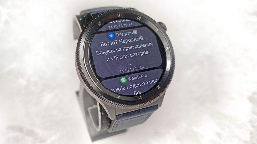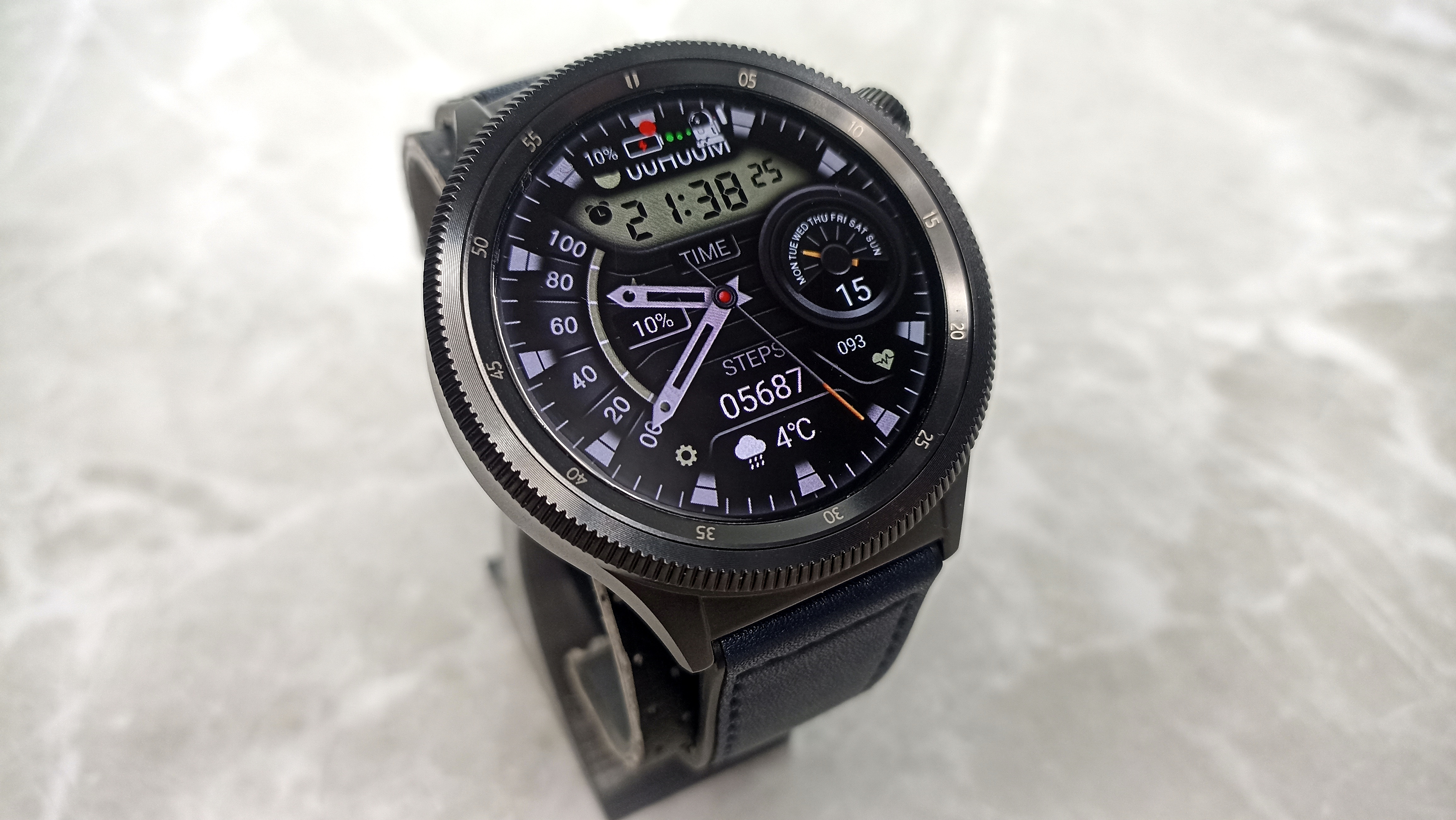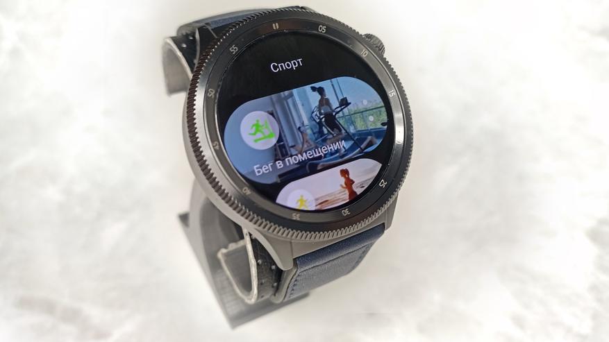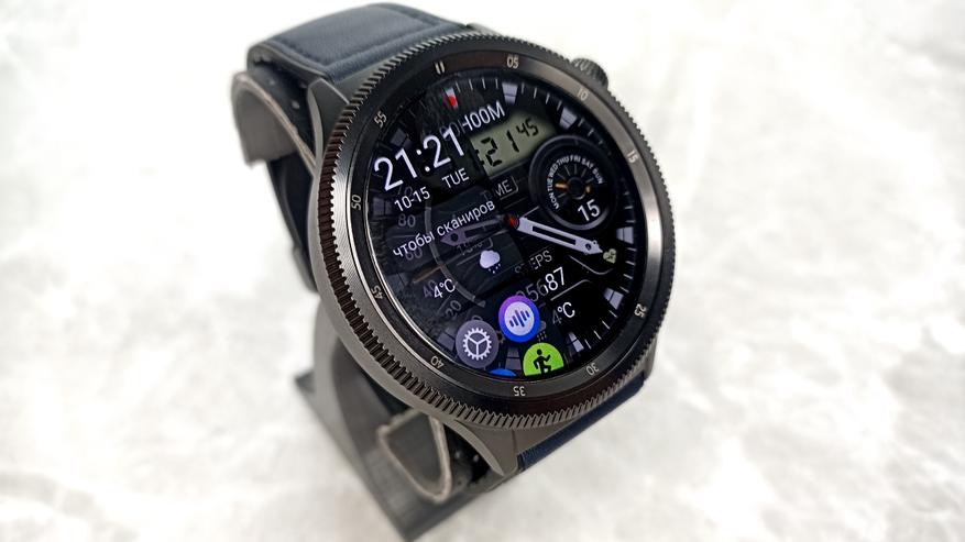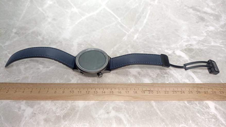 Перейдем с герою обзора. WATCH Gear GT3 — смарт часы в классическом дизайне, круглый 1.43″ экран обрамляет безель шириной 5 мм. Ширина (диаметр) корпуса без учета заводной головки 48 мм, толщина — 13 мм.