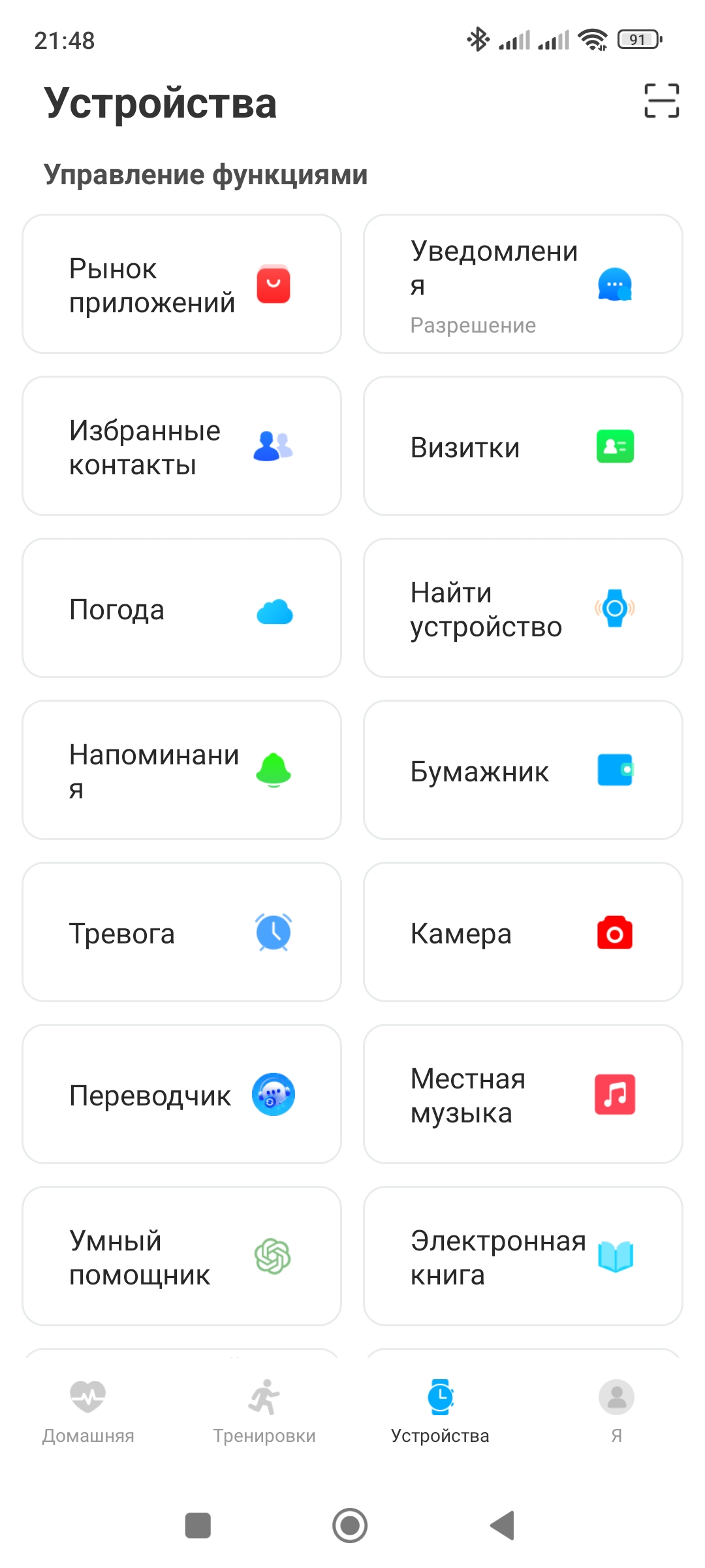 Приятно удивило качество перевода интерфейса гаджета — даже в подсказках придраться практически не к чему. В интерфейсе множество приятных мелочей, которые замечаешь не сразу. Например, в верхней части экрана появляются небольшие иконки уведомлений или даже анимированные персонажи, сообщающие о работе спортивных режимов или, например, необходимости зарядки.