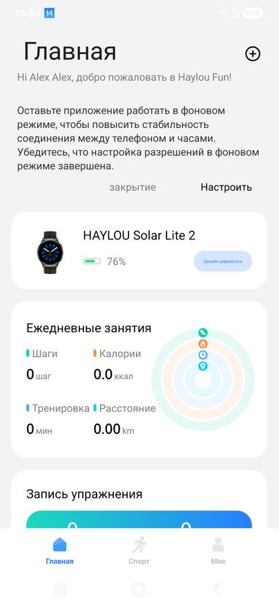 Для работы потребуется приложение Haylou Fun, доступное для iOS и Android. После установки задаются основные параметры: возраст, рост, вес, цели по активности. Все стандартно и без лишних сложностей. В настройках можно включить уведомления от приложений, активировать постоянный мониторинг пульса и стресса, а также задать включение экрана по взмаху руки.