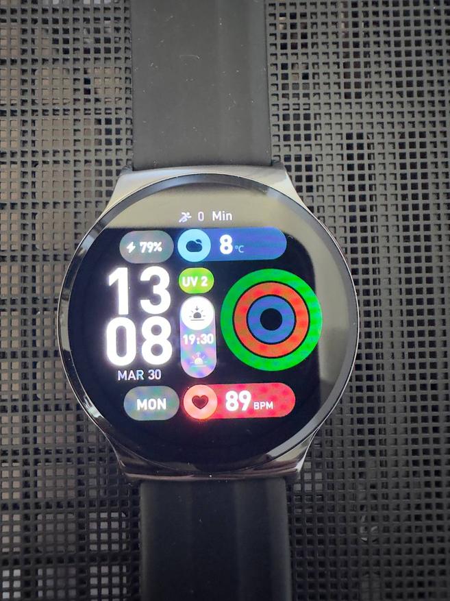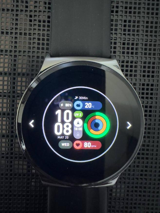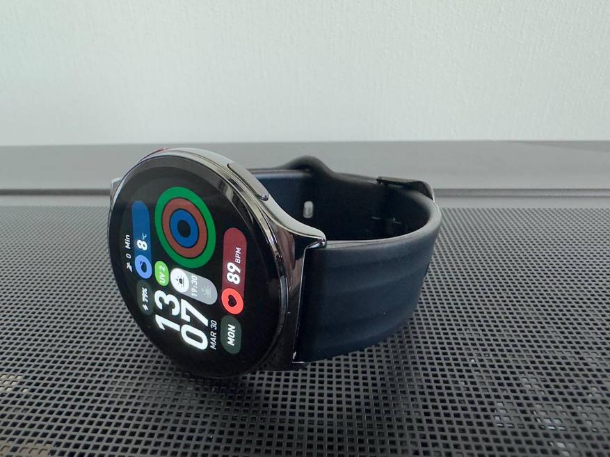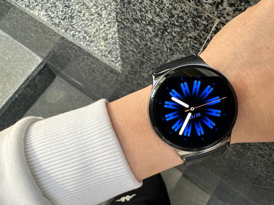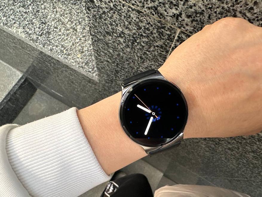 Передо мной умные часы с круглым дисплеем без лишних визуальных усложнений. Внешне модель выглядит универсально: подойдет и девушкам, и мужчинам. Нет явного смещения в сторону спорта или строго делового стиля, за счет этого часы воспринимаются нейтрально и спокойно вписываются в повседневный образ. Если подобрать подходящий циферблат (их более 200 облачных циферблатов), это ощущение только усиливается — внешний вид легко подстроить под более строгий или, наоборот, повседневный сценарий.