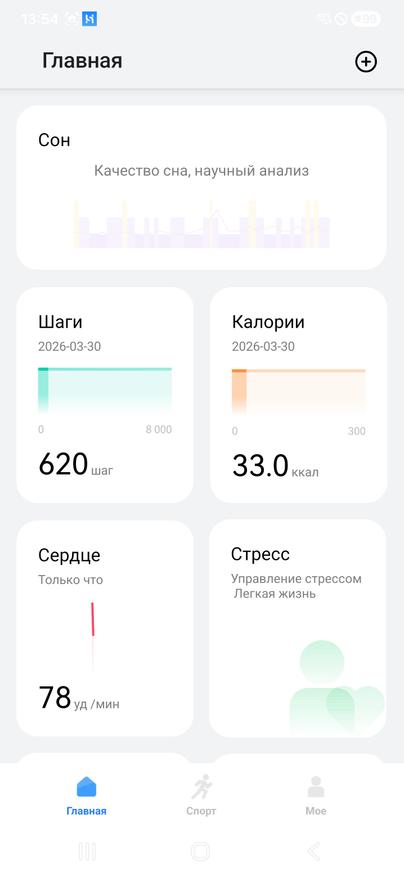 Синхронизация со смартфоном проходит быстро через Bluetooth 5.4. Связь стабильная: в помещении часы уверенно работают на расстоянии около 7 метров, на открытом пространстве — до 10 метров. Это важно, учитывая набор функций — звонки по Bluetooth, управление музыкой, запуск голосового помощника и отслеживание активности.