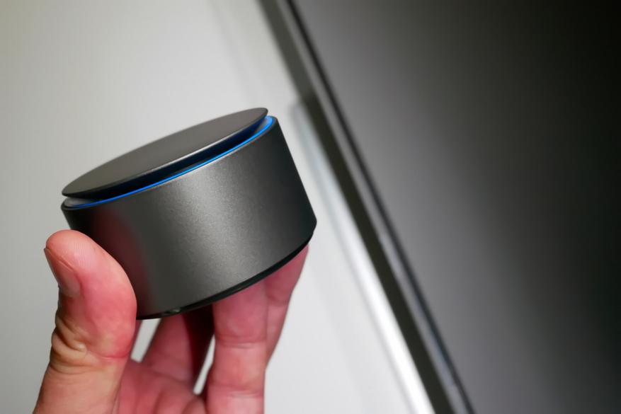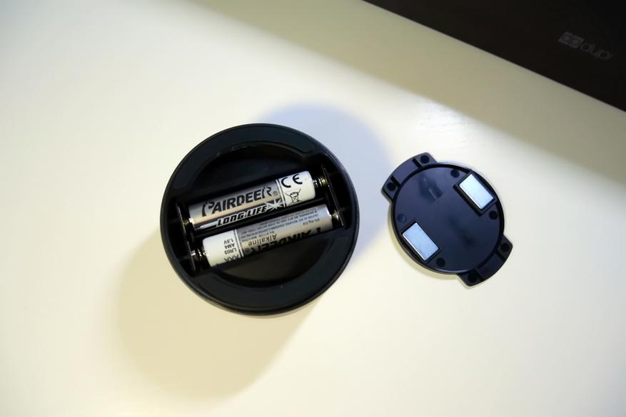 Сам пульт выглядит как круглая шайба. Пульт небольшой, выполнен из матового пластика. Даже просто держать в руках данный пульт приятно. Питание пульта — это две батарейки ААА. Они вставляются в заднюю часть пульта. Батарейки уже есть в комплекте. Первое сопряжение пульта и лампы быстрое, весь процесс описан в инструкции. В дальнейшей эксплуатации пульт мгновенно реагирует на команды. А данных команд у пульта больше, чем просто включение или отключение.