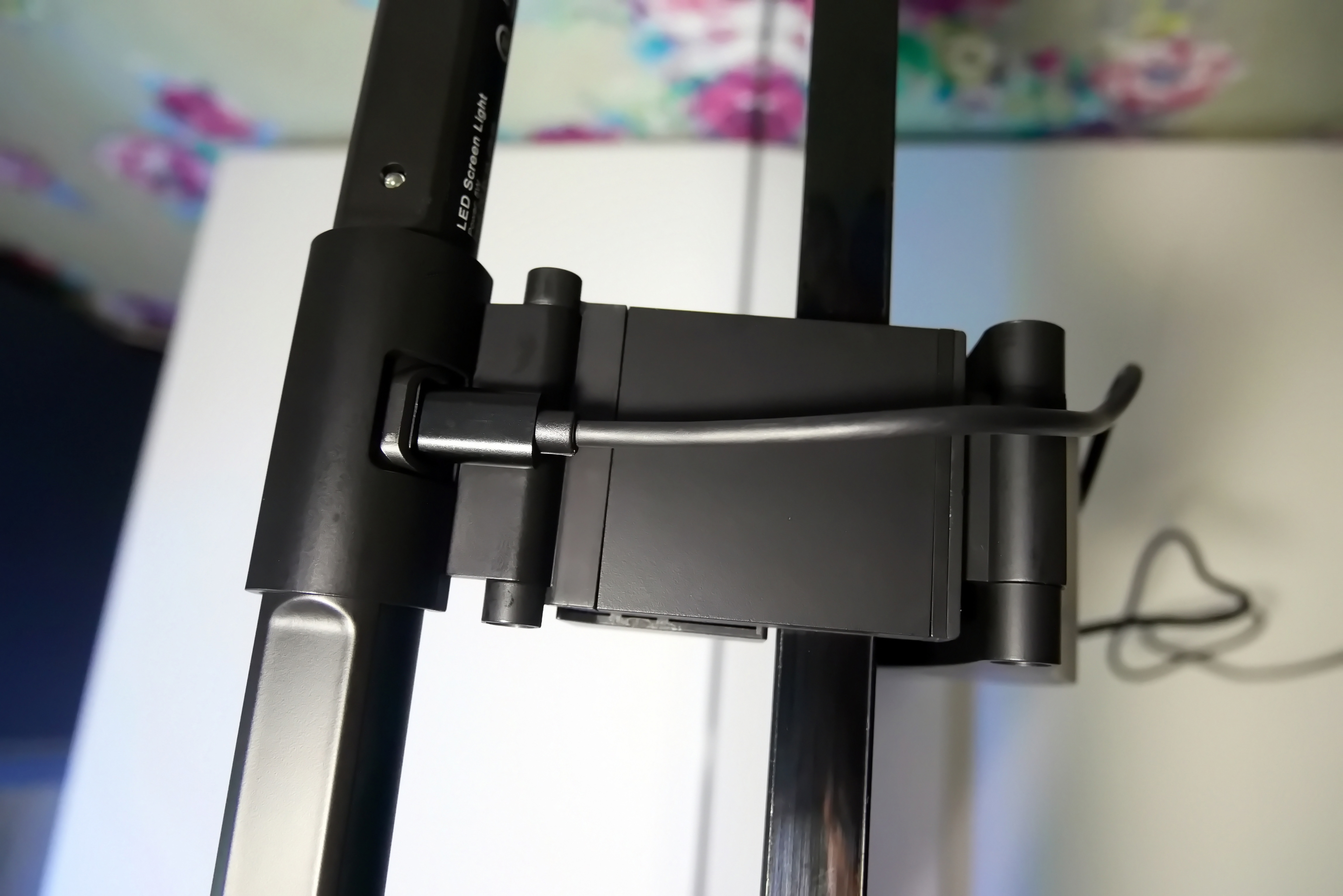 Держатель имеет утяжеленную конструкцию и располагается в задней части монитора. После установки лампы и ее подгонки под толщину монитора она надежно фиксируется. Совершенно нет беспокойства о том, что лампа упадет.
