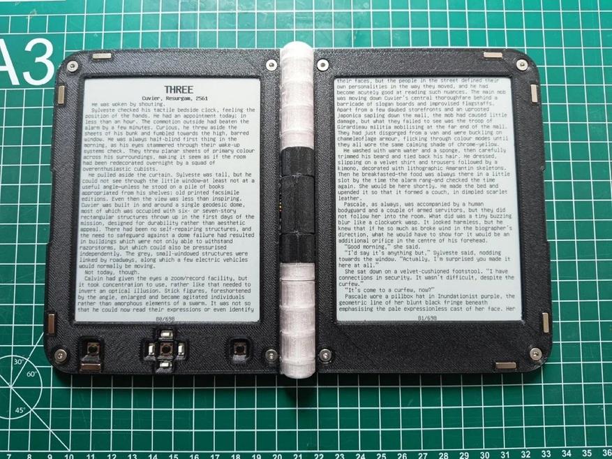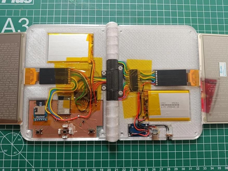 Пользователь Reddit из сообщества r/esp32 разработал и собрал инновационную электронную книгу с двумя экранами, реализующую концепцию двухстраничного разворота, характерного для традиционных печатных изданий. Устройство открывается и закрывается подобно обычной книге, демонстрируя одновременно левую и правую страницы текста.