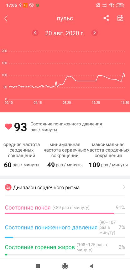 Но что будет если давление измерить в том случае, когда оно не настолько близко к норме, как у меня? Это главный вопрос. Тут тест с фактически пониженным давлением. Часы бодро отрапортовали о норме — 79 на 122, при реальном показании — 74 на 105.