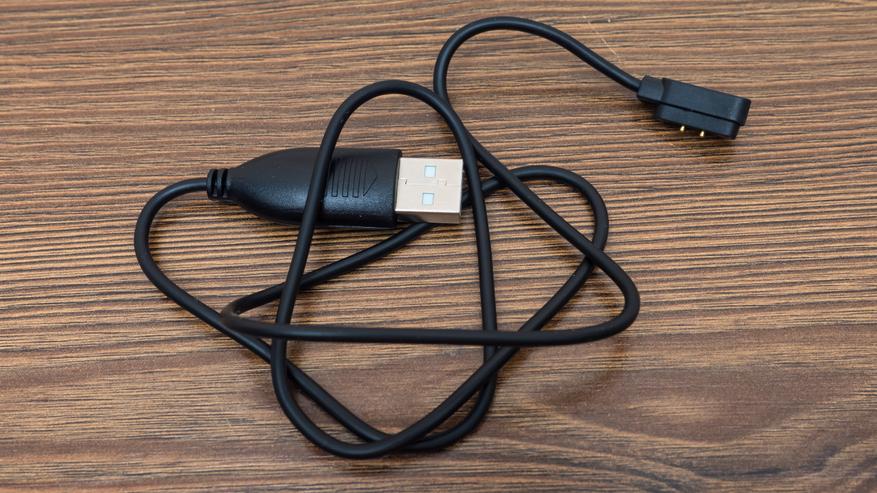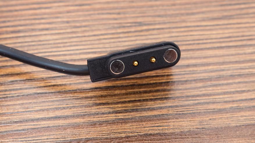 Зарядный кабель подключается к USB и с обратной стороны имеет двухточечный контакт, корректная полярность которого обеспечивается магнитной головкой. Кстати такие кабели можно найти на Алиэкспресс по запросу 2 контактный USB кабель.