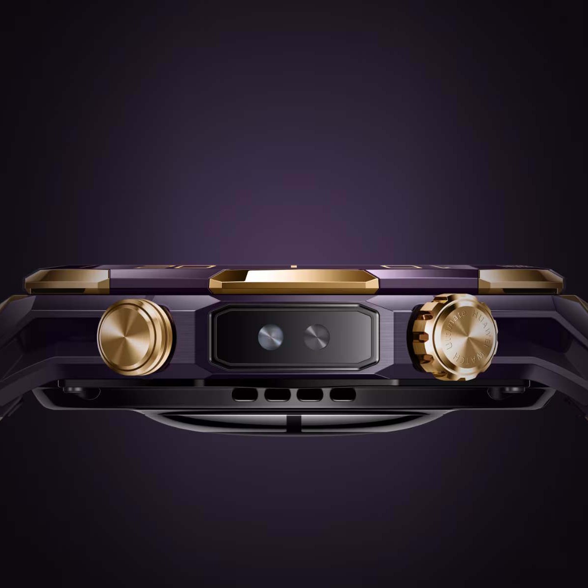 Модель Royal Gold стала вторым вариантом в линейке Watch Ultimate Design, дополнив ранее выпущенную версию в чёрно-золотом исполнении. Новинка отличается фиолетово-золотой цветовой гаммой и использованием драгоценных материалов в конструкции. Безель выполнен из керамики с декоративными вставками из золота 18 и 24 карат. Заводная головка также покрыта 18-каратным золотом.