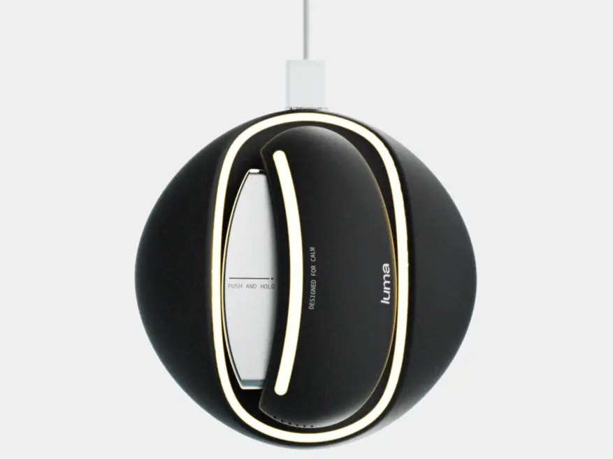 В режиме зарядки LUMA размещается на подставке и светится через встроенную светодиодную ленту, внешне напоминая декоративный предмет интерьера. Устройство не имеет клинического дизайна и не позиционируется визуально как медицинский гаджет.