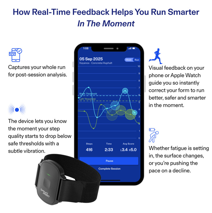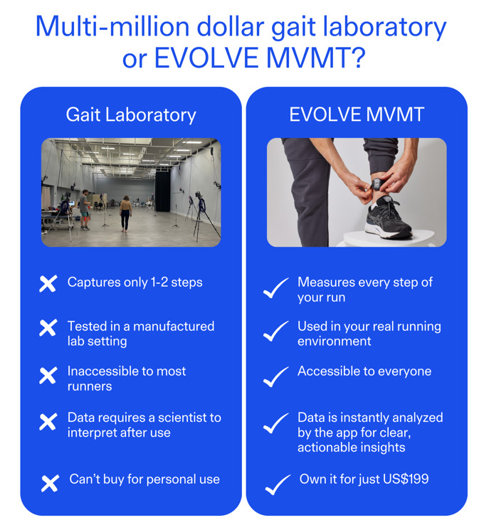 Устройство, разработанное для ношения на лодыжке, анализирует способность тела поглощать ударные нагрузки во время бега и предоставляет мгновенную обратную связь. Когда эффективность амортизации или техника бега ухудшаются, Evolve MVMT немедленно оповещает пользователя, позволяя скорректировать движения для снижения риска травм.