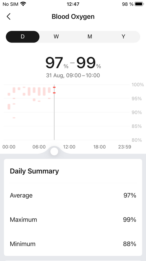 Правильнее получать доступ к этой опции через настройки часов в приложении Zepp, а не с первой вкладке, так как динамика показателя не будет представлена, если заходить в «Давление» таким образом. Через настройки часов, далее — «Настройки приложение» и «Ещё» открывается окно с динамикой показателя. Подобным образом, но через дополнительное приложение, предоставлялся доступ к динамике и на часах Samsung.