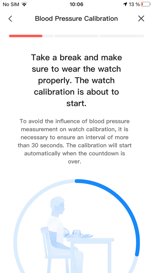 Проводятся три измерения давления, после которых записываются результаты и часы в течение примерно 60 с калибруются. Во время калибровки у меня было высокое давление. После оценил его с помощью часов — стало ниже и потом перепроверил при помощи того же самого ртутного тонометра — все совпало.