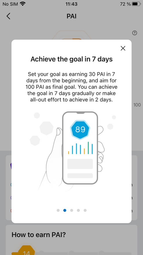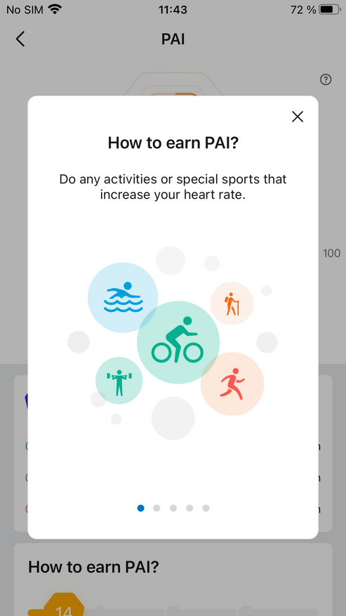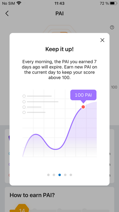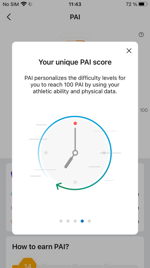 Оценка PAI — это показатель запаса о проделанной физической активности за промежуток времени (один день). Баллы начисляются за совершенную физическую активность. Если я буду поддерживать показатель PAI на постоянном и отличном от нуля уровне, то, значит, я веду активный образ жизни, занимаюсь спортом. Для меня это повод ещё раз заглянуть в часы, проверить количество набранных баллов.