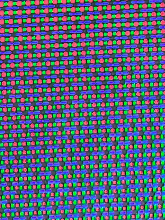 На следующей фотографии показал структуру пикселей 1,5″ AMOLED-экрана часов. Фотографию сделал при помощи режима «Супермакро» смартфона HUAWEI Pura 70 Ultra.