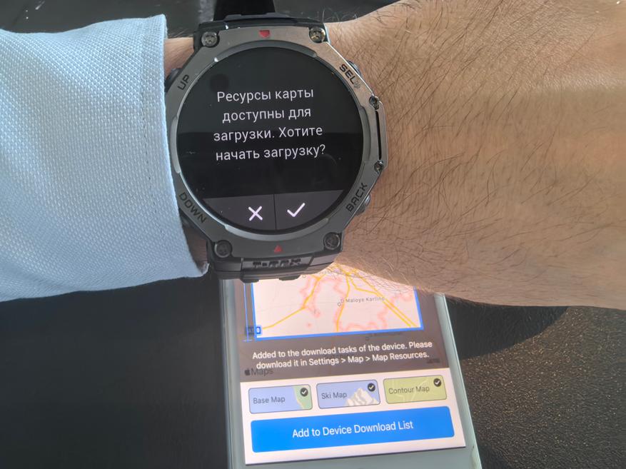 По фотографии выше видно, что доступны три вида карт: базовая, карта лыжных трасс и контурная. Бренд развивает свой сервис, делая возможным загружать разные типы карт. Теперь и с умными часами и скачанной в них картой нельзя потеряться на незнакомой трассе. Большая автономность, заявлено 114 ч в режиме GPS, с головой, думаю, покроет затраты времени на поиск выхода с лыжной горной местности в людные места.