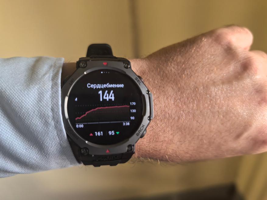 Базовые показатели активности, пульс, кислород, стресс, сон, носимые устройства Amazfit и других известных брендов определяют неплохо. Это заметно по сравнению графиков пульса T-Rex 3 и Watch 4 Pro SE. Часы были на разных руках, поэтому отмеченное время и разница в пульсе не критичны. Представленные графики похожи.