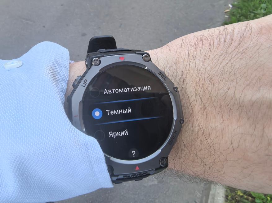 На следующей фотографии привел сравнение яркости экранов спортивных часов Amazfit T-Rex 3, смарт-часов Amazfit Balance и HUAWEI Watch 4 Pro SE. У каждых из них максимальные значения заявлены в 2000, 1500 и 700 нит, соответственно. На ярком солнце текст лучше виден на обозреваемых, на Amazfit Balance — похуже, но тоже неплохо. Модель HUAWEI проигрывает двум другим в этом показателе.