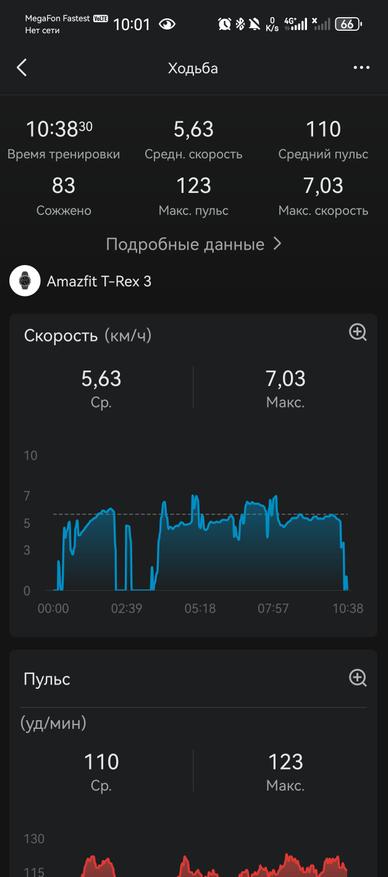 T-Rex 3 и T-Rex Ultra, работают на разных версия ОС: ZeppOS 4 и ZeppOS 3.5, поэтому интерфейс спортивной программы «Ходьба» немного отличается. В новой ОС теперь после окончания активности даётся характеристика пульса, как это делается на HarmonyOS, но только в последней оценивается пульс восстановления за две минуты после спорта. В этом плане Amazfit повторил, или видоизменил,