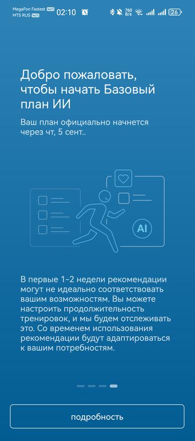 Подобное обстоит и с Zepp Coach, но я им не часто пользуюсь и, как понимаю, не во всех регионах он доступен, поэтому рассказать про него ничего не могу. Как дополнение, но не в рамках «тренера», в программе Zepp во вкладке «Спорт» есть прогноз времени бега до полумарафона, после и марафона, который строится на основе результатов занятий спортом через устройства Amazfit. Ситуация с работой сервисов Zepp Aura, и Zepp Flow такая же, как и Zepp Coach.