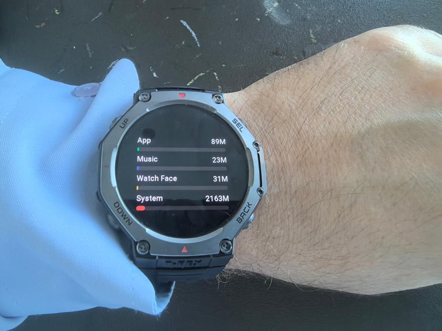 Внутренняя память часов номинально составляет 32ГБ. Такой объем больше, чем у модели Ultra или Balance практически в 10 раз. По этому показателю часы соответствуют флагманским от Apple, Samsung, HUAWEI. Такой большой объем памяти можно занять музыкой, картами. Второму бренд отводит важное внимание, так как в недавнем обновлении появилась возможность загрузки карт лыжных трасс в часы, а теперь и контурных. Это, как мне кажется, сделано специально, чтобы подчеркнуть спортивную направленность часов, особенно серии T-Rex. Наличие Wi-Fi позволяет быстро загрузить большее количество участков карт, чем на названных выше моделях Amazfit с меньшим объемом памяти.