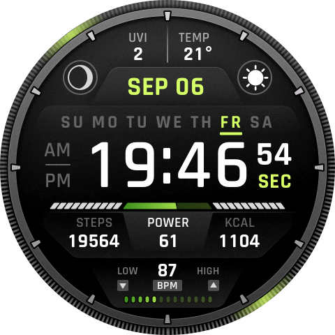 В часах есть автоматическое определение тренировок. Количество активностей больше, чем в смарт-часах, и составляет 8 программ: «Ходьба», «Ходьба в помещении», «Бег на улице», «Беговая дорожка», «Велосипед на улице», «Бассейн», «Эллиптический тренажёр», «Гребная машина». Можно выбрать чувствительность определения активностей: слабая, средняя, высокая. В часах есть двухуровневый GPS, поэтому при занятиях с GPS можно влиять на точность местоположения. Лучший вариант расходует заряд быстрее. При высокой чувствительности автоопределения активности («Ходьба», как было у меня) система предлагает начать запись на 80 с, сохраняя информацию до этого. При низкой — на 6-7 минуте. Окончание спорта также будет произведено автоматом, о чем часы оповестят пользователя вибрацией или ещё дополнительно звуковым сигналом бипера. На таких тренировка будет нарисован знак «AI».